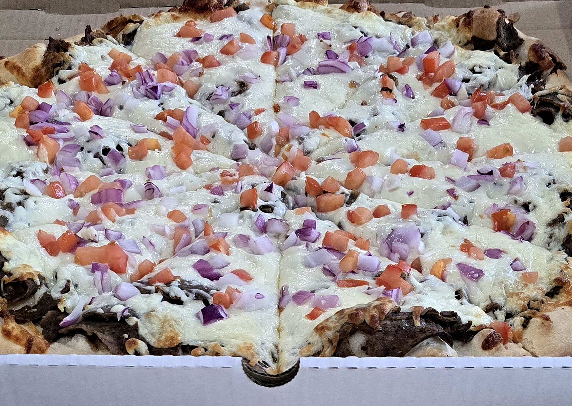 | Works: salami, pepperoni, mushrooms, onions, bacon, green peppers | 13.50 | 20.50 | 28.50 | 35.99 |